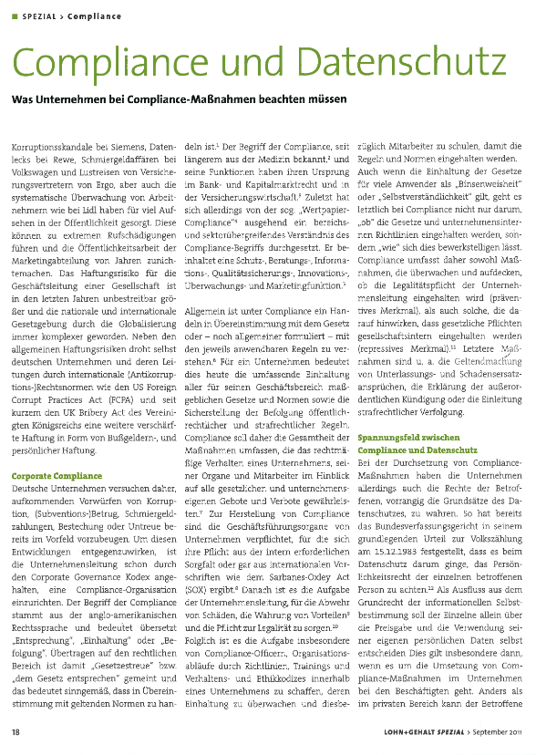 Stellung als Datenschutzbeauftragter – Erstellung einer Datenschutz-Compliance – Beratung im CSR